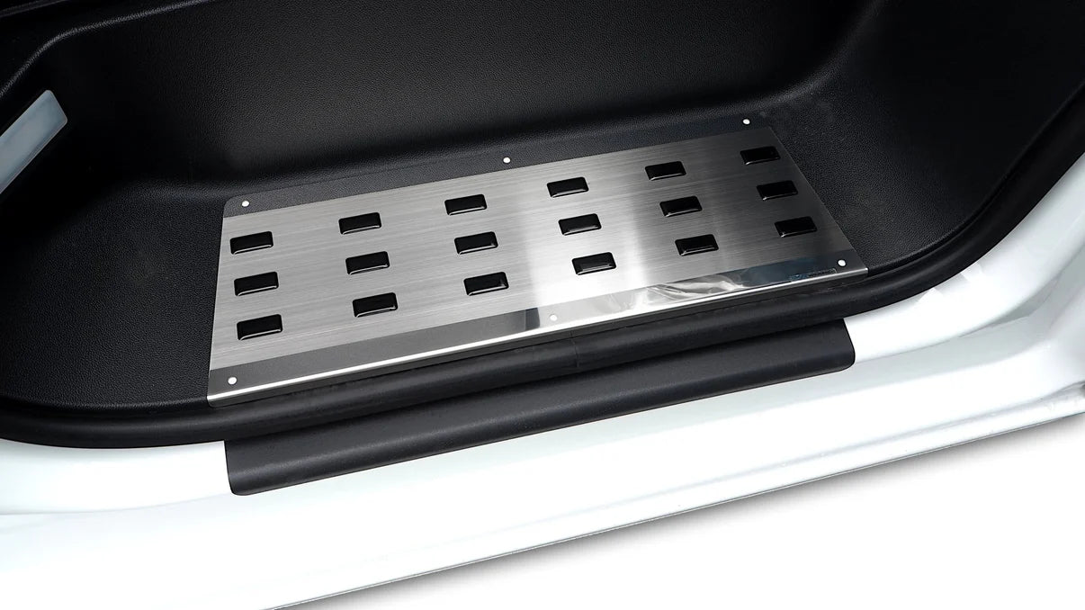 Våra fotstegsskydd är tillverkade i premium rostfritt stål, vilket garanterar en lång livslängd, hög hållbarhet och minimalt underhåll. Dessa skydd är idealiska för alla som vill bibehålla ett snyggt utseende på sin bil samtidigt som de ökar säkerheten vid insteg, speciellt under krävande väderförhållanden. Skydden är noggrant anpassade till varje bilmodell för en exakt passform, vilket säkerställer enkel installation utan specialverktyg.